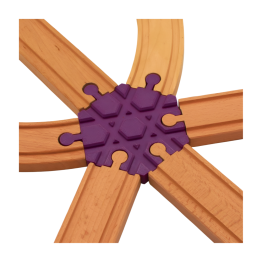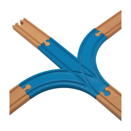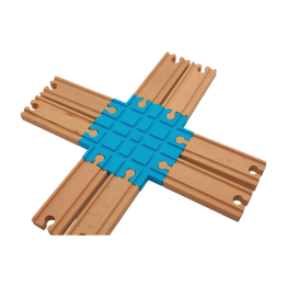 Pravoúhlá křižovatka pro křížení dvou typů drah, dřevěná vláčkodráhy s LEGO® Duplo vláčkem.