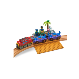 - Každý vagonek je vybaven speciální základovou deskou s výstupky, která je plně kompatibilní s nejoblíbenějšími značkami stavebnicových kostek (např. LEGO® Duplo, klasické kostky, apod.).